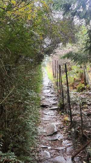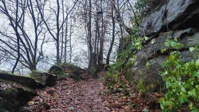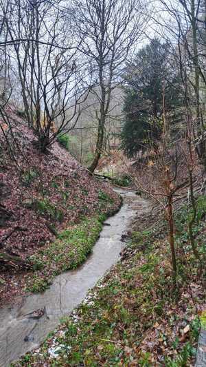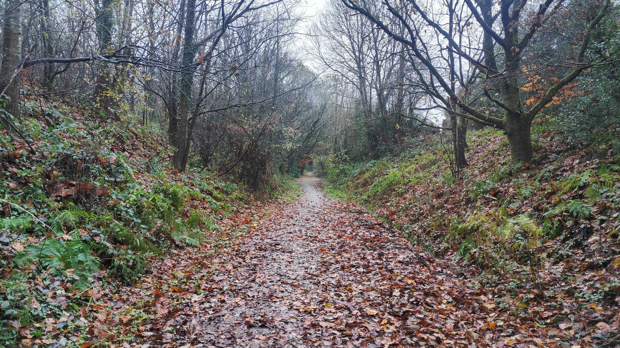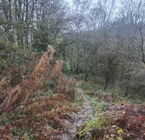From the train station, head uphill past the remembrance memorial and turn left into a cul-de-sac. There is a little hidden ginnal near the bottom that accesses the forest below. The village is largely residential and perched on a steep hill, which gives nice views over the valley.