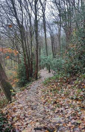 Hurst Clough is aptly named, being a wooded (Hurst) steep ravine (Clough). The paths here contribute largely to the Natural terrain I've given this walk.