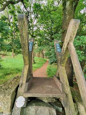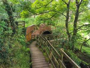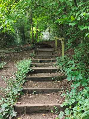 The paths roll up and down the hills heading into the woods. It's a sheltered area, both from the sun and rain in a walk. You'll hear and see plenty of local wildlife round this area, and cross a peaceful stream over an old brick bridge.