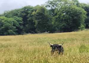 The path takes you through the East Lodge. This marks your entrance to Lyme Park. The path here is good and flat. This is the best spot for deer spotting. The red deer aren't normally hard to spot. They are surprisingly big, and there's lots of them.