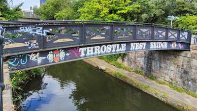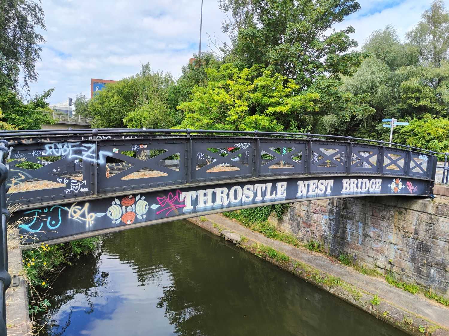 As you near Media City, you will cross Throstle Nest Bridge. A local landmark as many local running clubs use the canal for their runs, and it marks 2.5km from where you joined the canal.