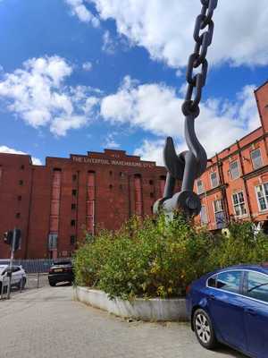 From Throstle Nest, head up the road and cross the roundabout. Here you can see the old Liverpool Company Warehouse. Walk over the large red bridge, and you can see Media City arrayed to your left.
