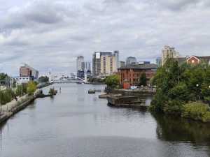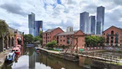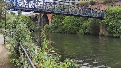 Bridgewater Canal is one of the first canals in Manchester. It runs all the way out to Worsley. The canal saw the entire industrial revolution, and you can see dozens of old warehouse buildings. Most of them are now converted to housing.