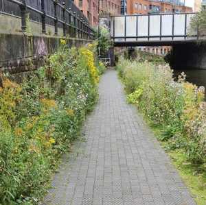 This route starts and ends near Castlefield bowl. The nearby museum and Factory International have café outlets. This route makes a great and safe walk through the centre during a sunny day. It is poorly lit at night, however, and being next to a canal, I recommend care.