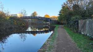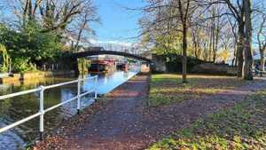 To get past the bridge, you do divert onto the road. Here, you can pass through pocket park, a quaint little spot on the side of the Ship Canal. Once you cross the Ship Canal, you can rejoin the canal by turning left immediately. However, if you detour a couple of hundred yards further up the road, you can see All Saints Church, a great piece of architecture.