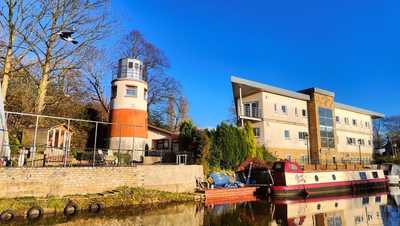 Throughout the canal, there are sections of bizarre architecture. The first is as you enter Monton. A huge lighthouse, and nautical themed building, welcome you to Monton. An old mill town, crossing the green bridge will take you to the town's high street, should you want a coffee break.