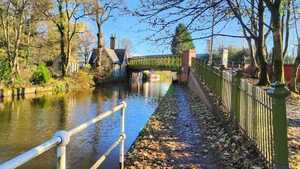 The first village you walk through is Worsley. Here you'll see village greens and old cottages. The sides of the canal are fields and farmland. There is information on the history of the canal on benches down the canal path.