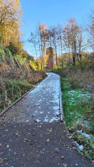 The walk starts in Worsley Delpth. The mine where the coal was first dug out of the ground, and loaded onto Starvationers. The viewing platform details plenty of interesting information about the area, and the bizarre sculpture you will see before you.